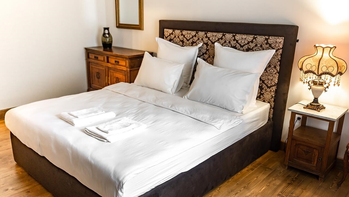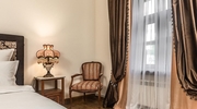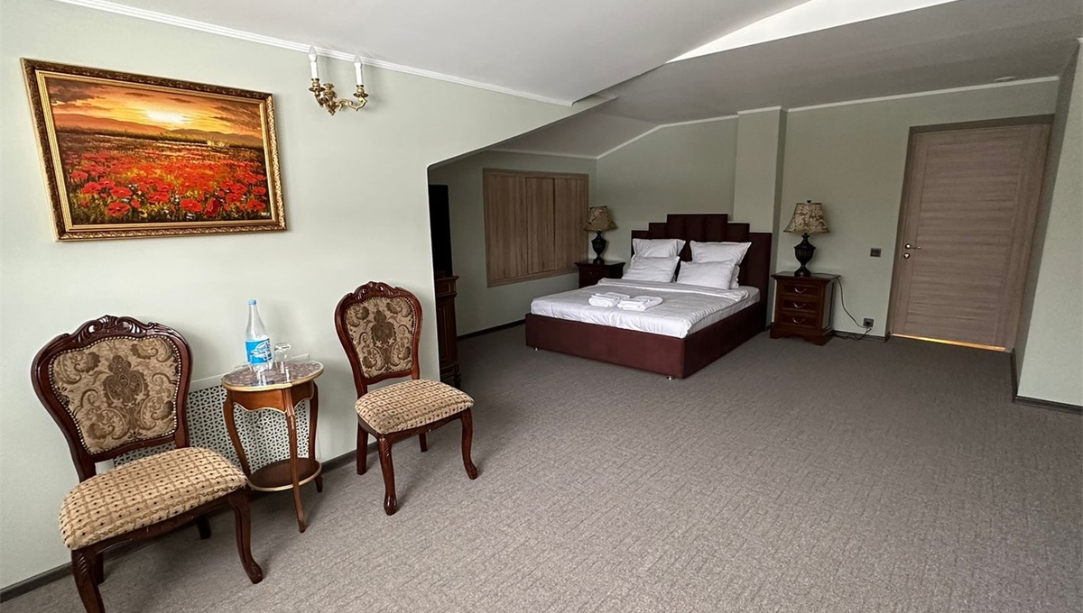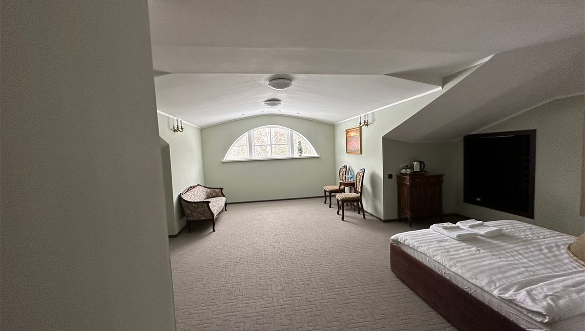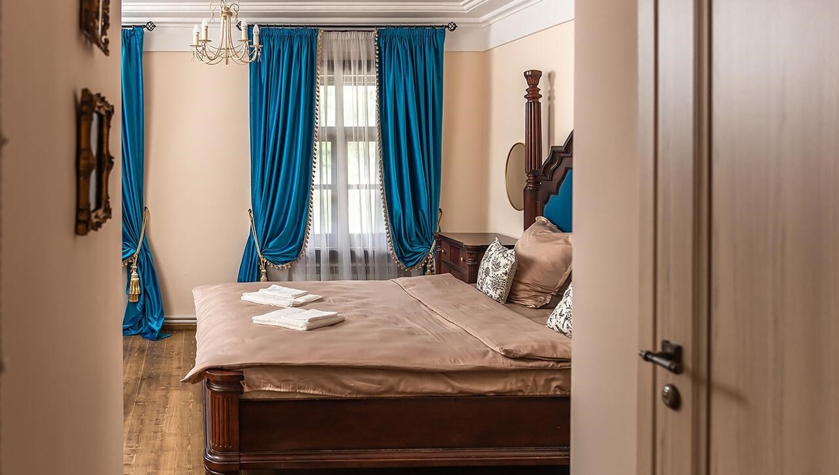 Номера обставлены антикварной мебелью и оформлены в старинном стиле. Гости смогут почувствовать атмосферу того времени. Приятным дополнением станет игристый напиток