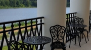 Усадьба находится в живописном месте на берегу озера. Рядом раскинулся парк. На территории усадьбы обустроена парковка