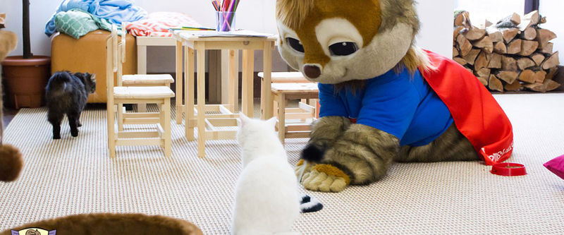 Одновременно это и уютное кафе, и арт-пространство, и библиотека, и игротека и общение с усатыми-полосатыми!