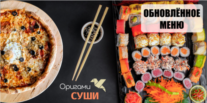 Вкусно и красиво с «Оригами»! - Купон (номер) даёт скидку 50% на следующие сеты и пиццу:
