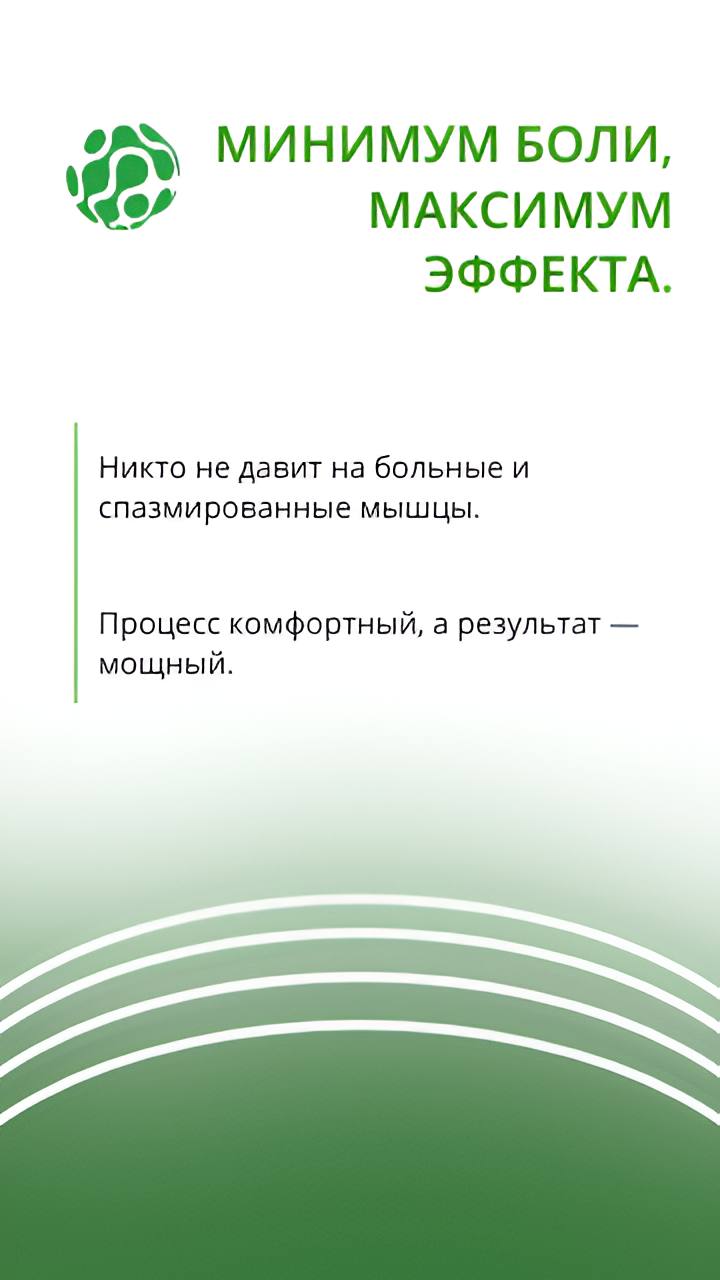 Процедура воздействует мягко и бережно, активируя внутренние резервы организма и способствуя быстрому восстановлению мышц и суставов.