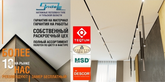 - Компания «СИНДЕЛ» за 10 лет активной работы успешно зарекомендовала себя на рынке натяжных потолков в Туле.