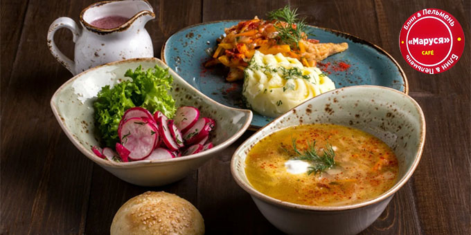 Комплексные обеды с доставкой в кафе "Маруся" со скидкой до 30%!