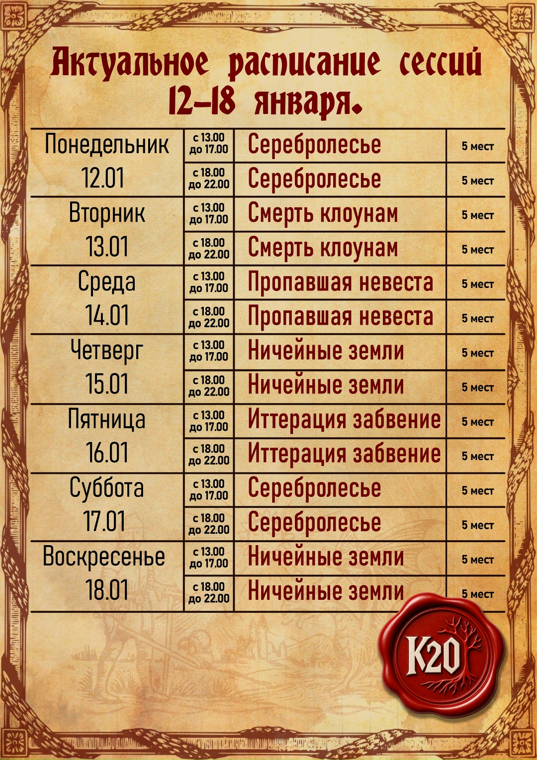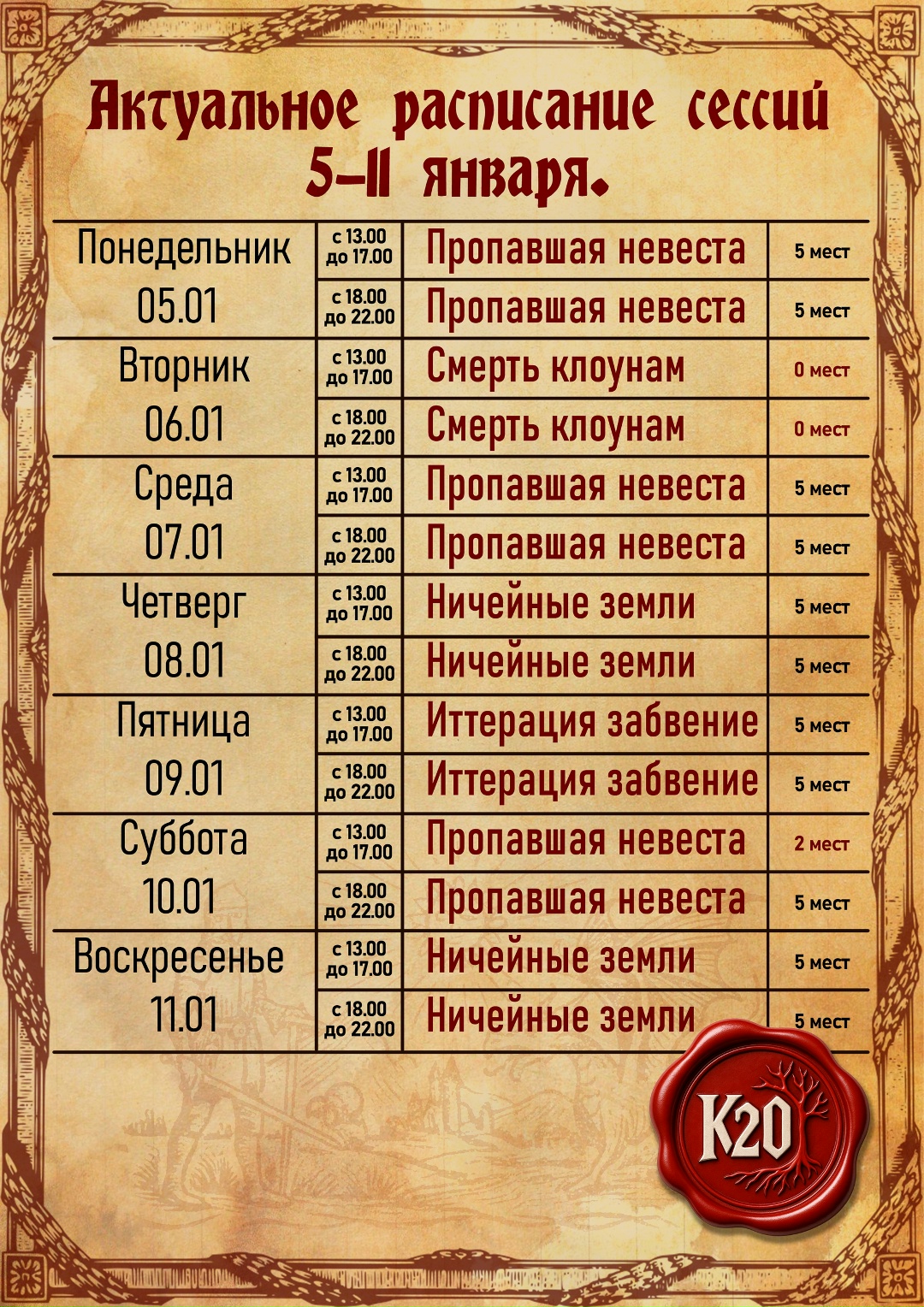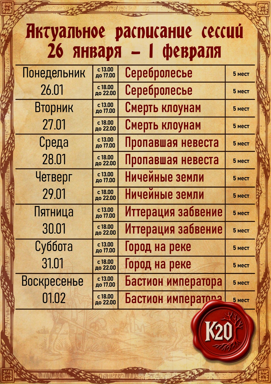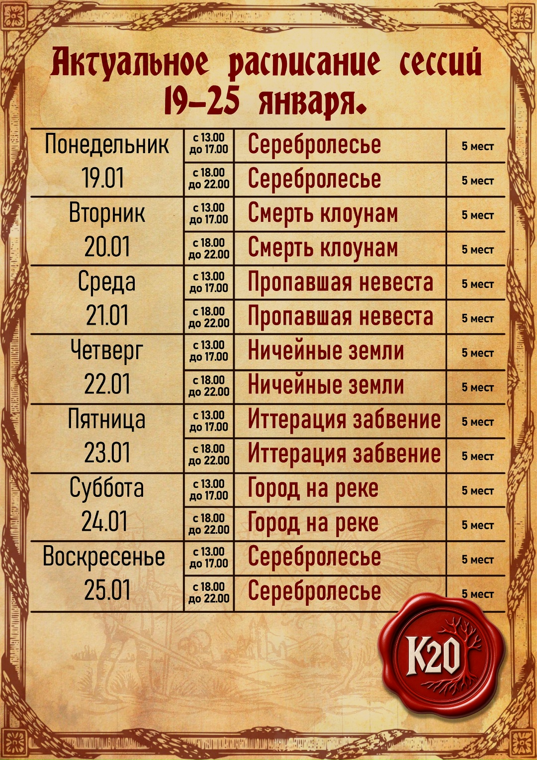 - Клуб настольных ролевых игр «K20» открывает бронь на игровые сессии по Dungeons & Dragons.