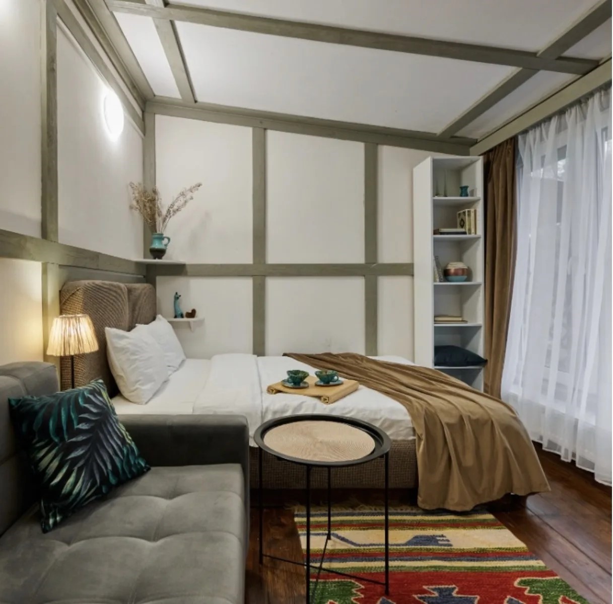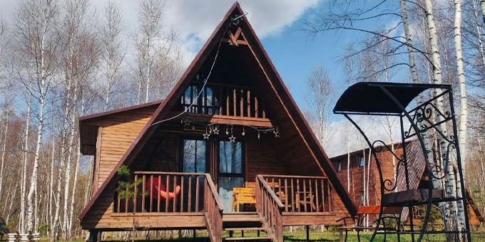 * выходные — 14700 р. вместо 21000 р. - Домик с сауной и дровяным камином (для 2 человек):