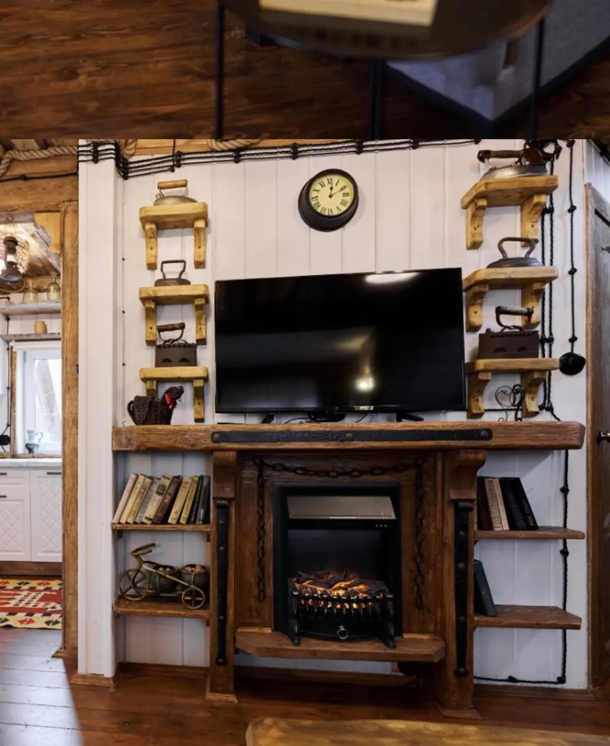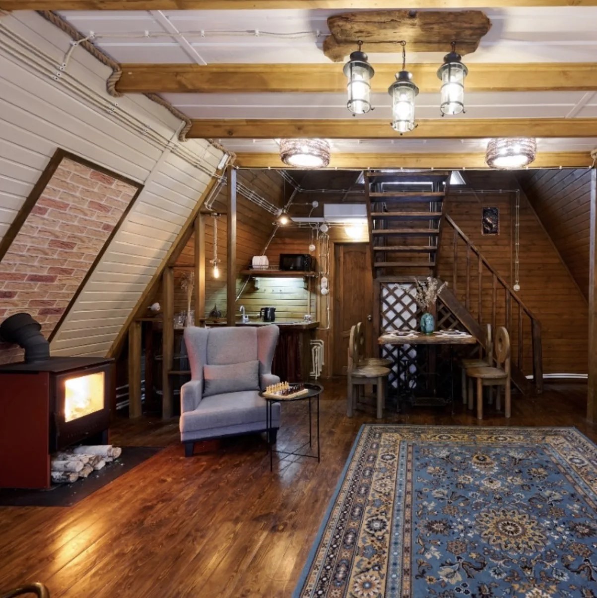 * выходные — 9800 р. вместо 14000 р. - Двухуровневый дом с электрокамином (для 2 человек):