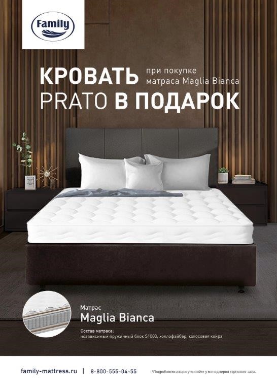 - 1. При покупке матраса «Maglia Bianca» — кровать в подарок