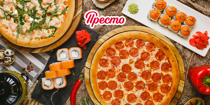 Разнообразное меню и вкусные блюда от сети пиццерий «Престо» со скидкой до 50%!