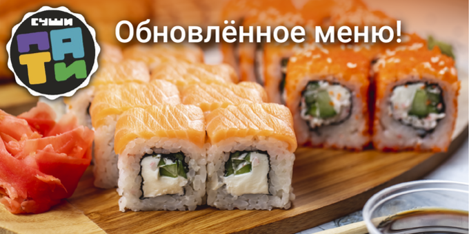 Служба доставки «Суши Пати» дарит скидку 50%! Продолжаем лакомиться вкусными сетами!