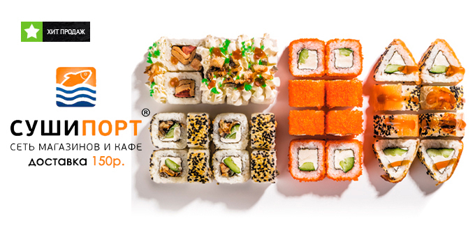 Успей попробовать! Попробуй сеты в "Суши Порт" со скидкой 50%!