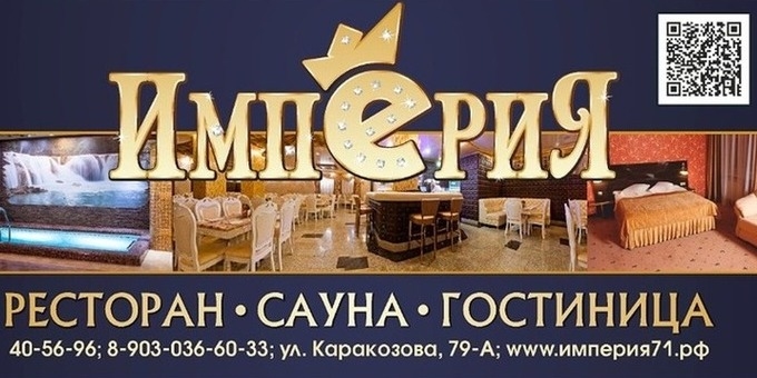 Для Вас незабываемый ужин в ресторане и расслабляющий отдых в сауне в шикарном комплексе! - Купон (номер) даёт право скидки 50% на посещение сауны в комплексе «Империя».