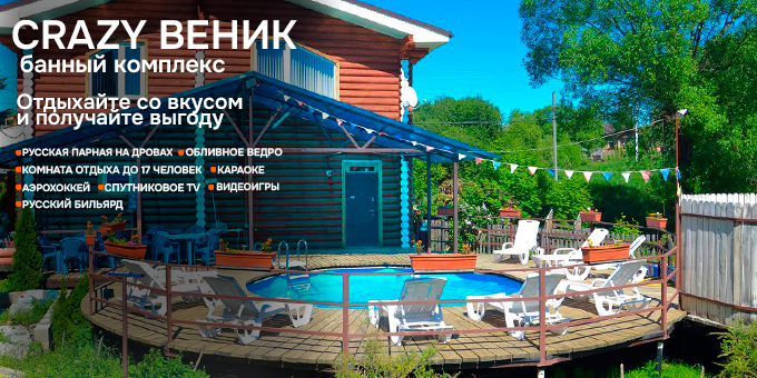 Загораем и отдыхаем в комплексе «Crazy веник»! Баня и бассейн со скидкой до 50%