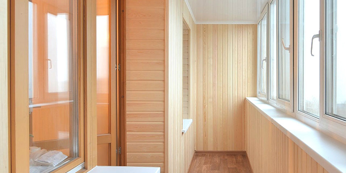 * внутренняя отделка балконов и лоджий ламинированными ПВХ панелями, евровагонкой