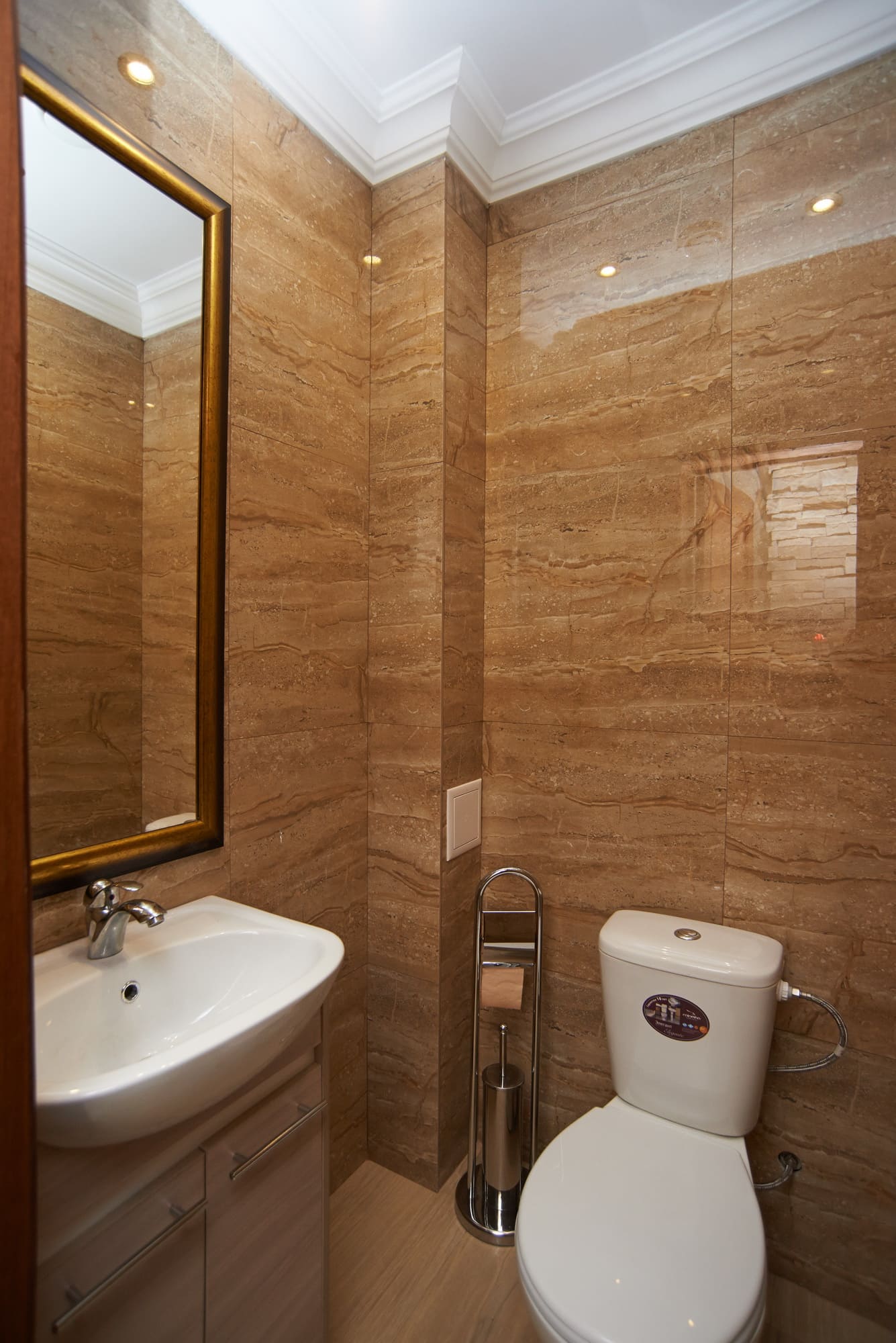 * экологичные материалы — отделка из натурального дерева (липа, кедр, осина), мрамор и керамика