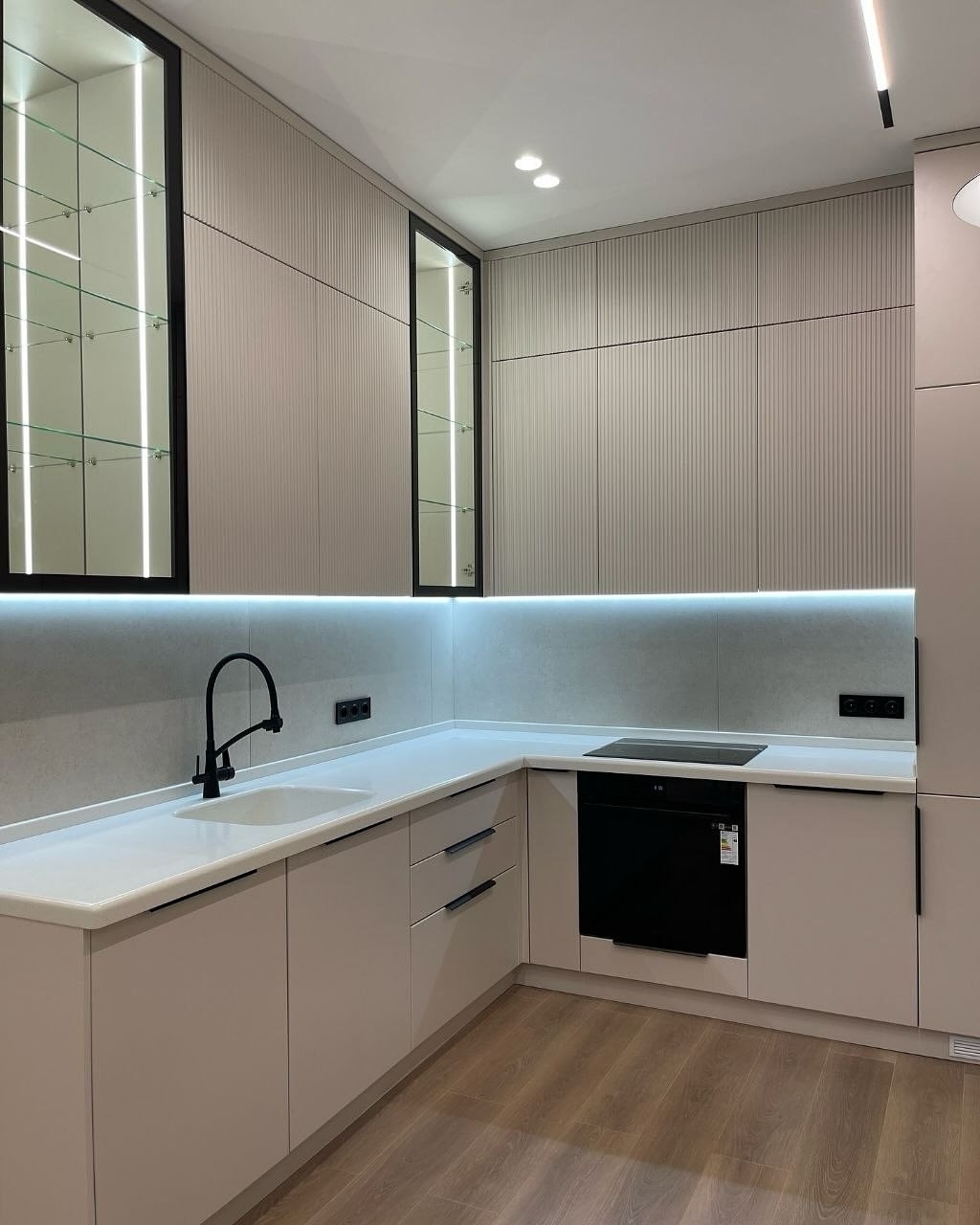 * функциональность. Каждая деталь продумана для удобства повседневного использования: плавное закрывание дверей, удобные выдвижные системы, подсветка и т. д.