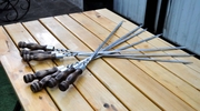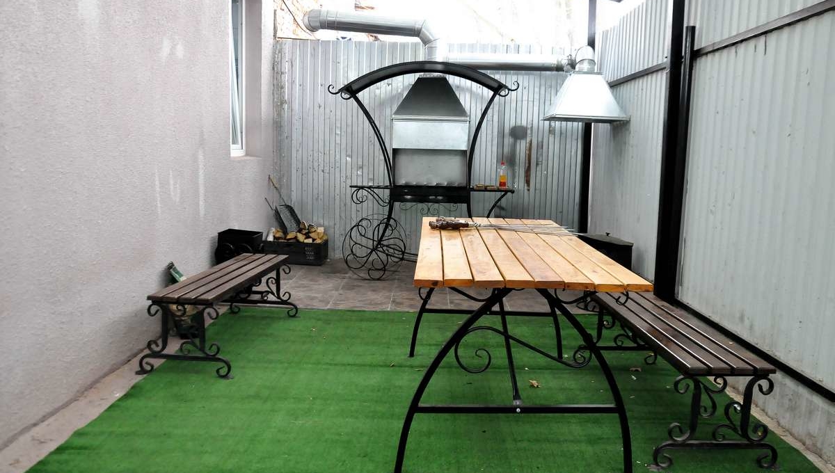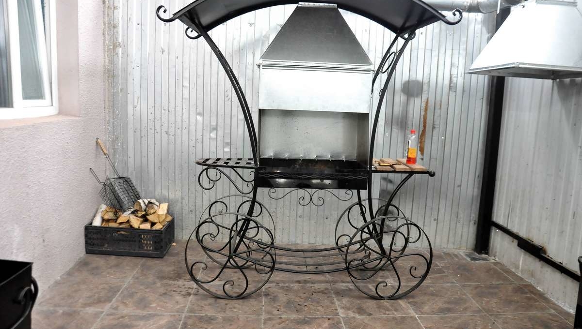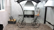 * мангал с навесом, шампуры и стол на улице