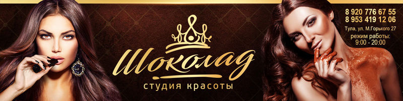У большинства людей шоколад ассоциируется с чем-то приятным, вкусным. Всего несколько кусочков этого лакомства способны улучшить настроение. Студия-салон «Шоколад» получила свое название не случайно. Здесь все направлено на то, чтобы каждому клиенту была подарена доля положительных эмоций. Различные процедуры красоты не только преображают внешний облик, но и вселяют чувство уверенности в себе, вызывают улыбку.